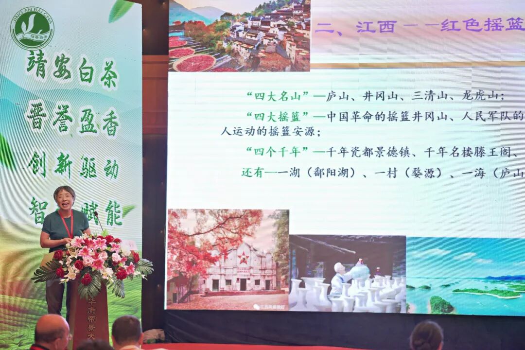 江西省茶叶产业技术体系原首席专家杨普香研究员以《江西茶?靖安白茶》为题介绍了江西茶产业及靖安白茶的发展概况,并提出以科技创新推动靖安白茶产业高质量发展的初步思路。