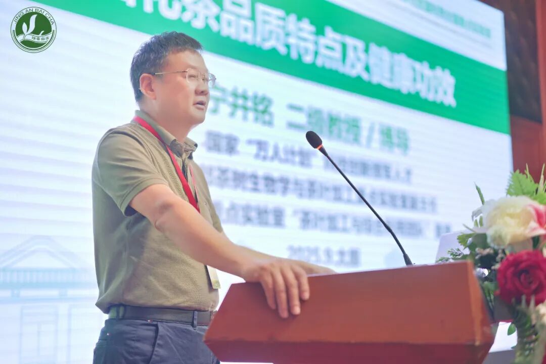 安徽农业大学二级教授,茶树种质创新与资源利用全国重点实验室“茶叶加工与综合利用团队”首席专家宁井铭教授以《白化茶品质特点及健康功效》为题系统阐述了叶色变异茶树品种的资源现状与市场趋势、白化茶的品质特征与健康功能,以及靖安白茶的品质优势与发展潜力。