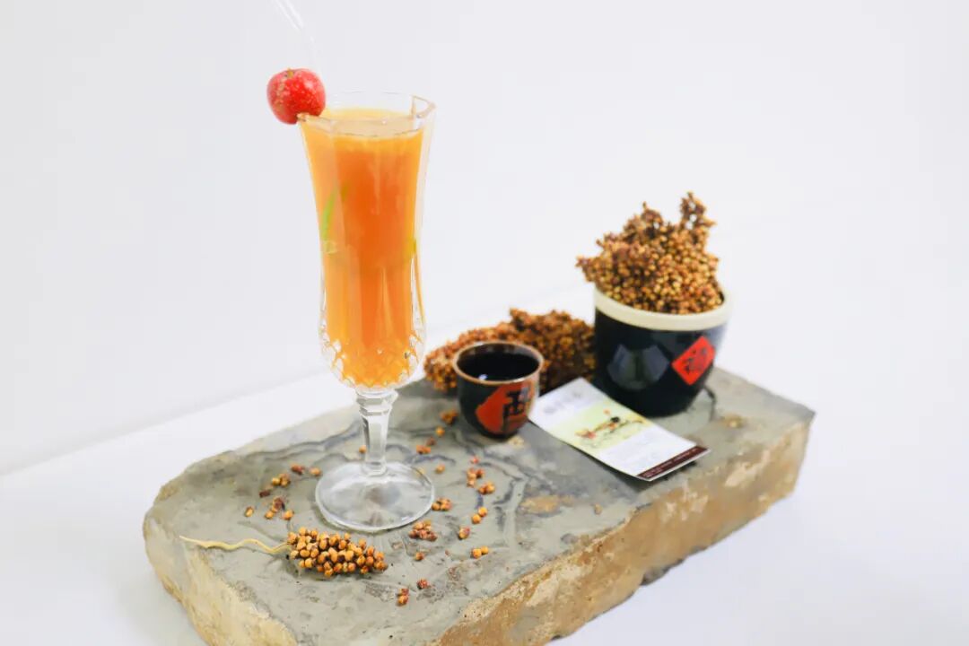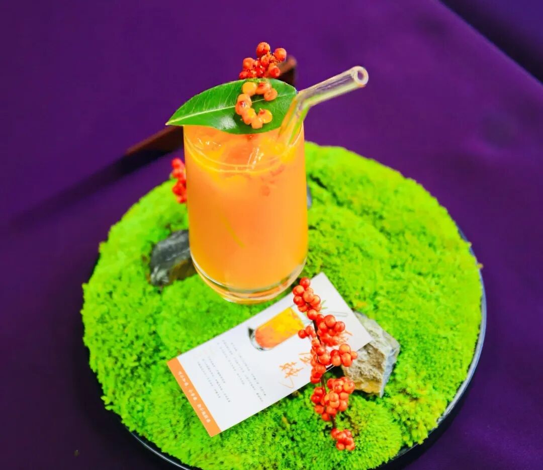 安新磊的作品《雁门金棘》以“雁门”锚定山西根脉,“金棘”点明沙棘这一乡土作物,这是农户“致富果”。沙棘的鲜爽酸甜作底,揉进茉莉的清雅与香水柠檬的鲜活,酸甜适口、香韵明快。西北农林科技大学樊志民教授“可不事农、不知农,但绝不可以轻农”的理念——让沙棘从田间到杯盏,助农情怀随着这杯调饮作品传递到每个人的口中。
